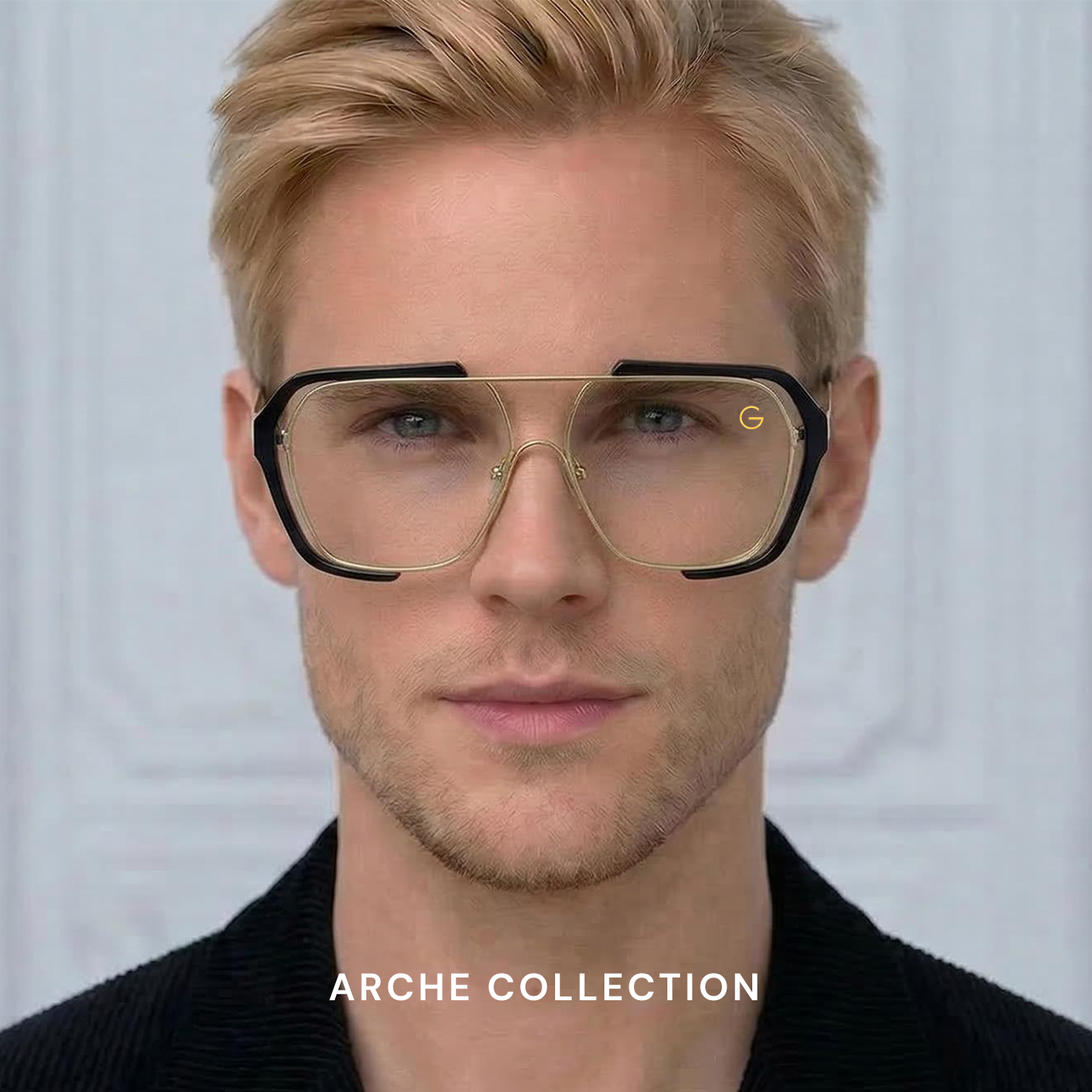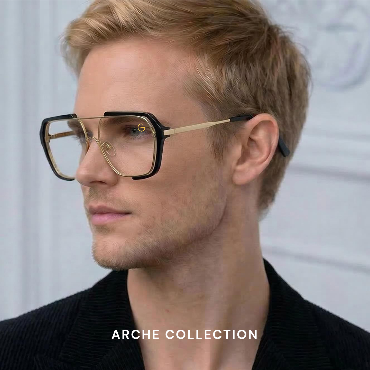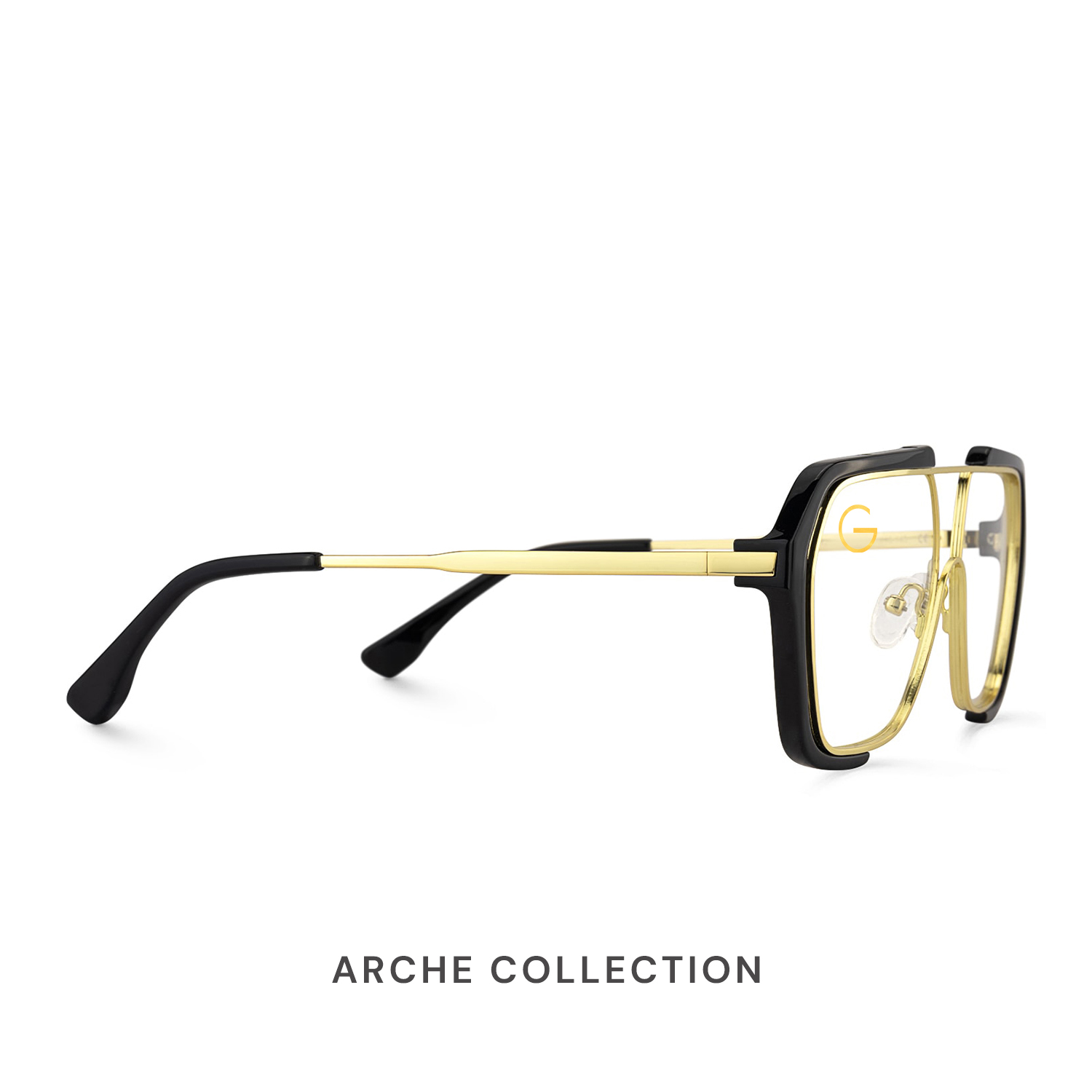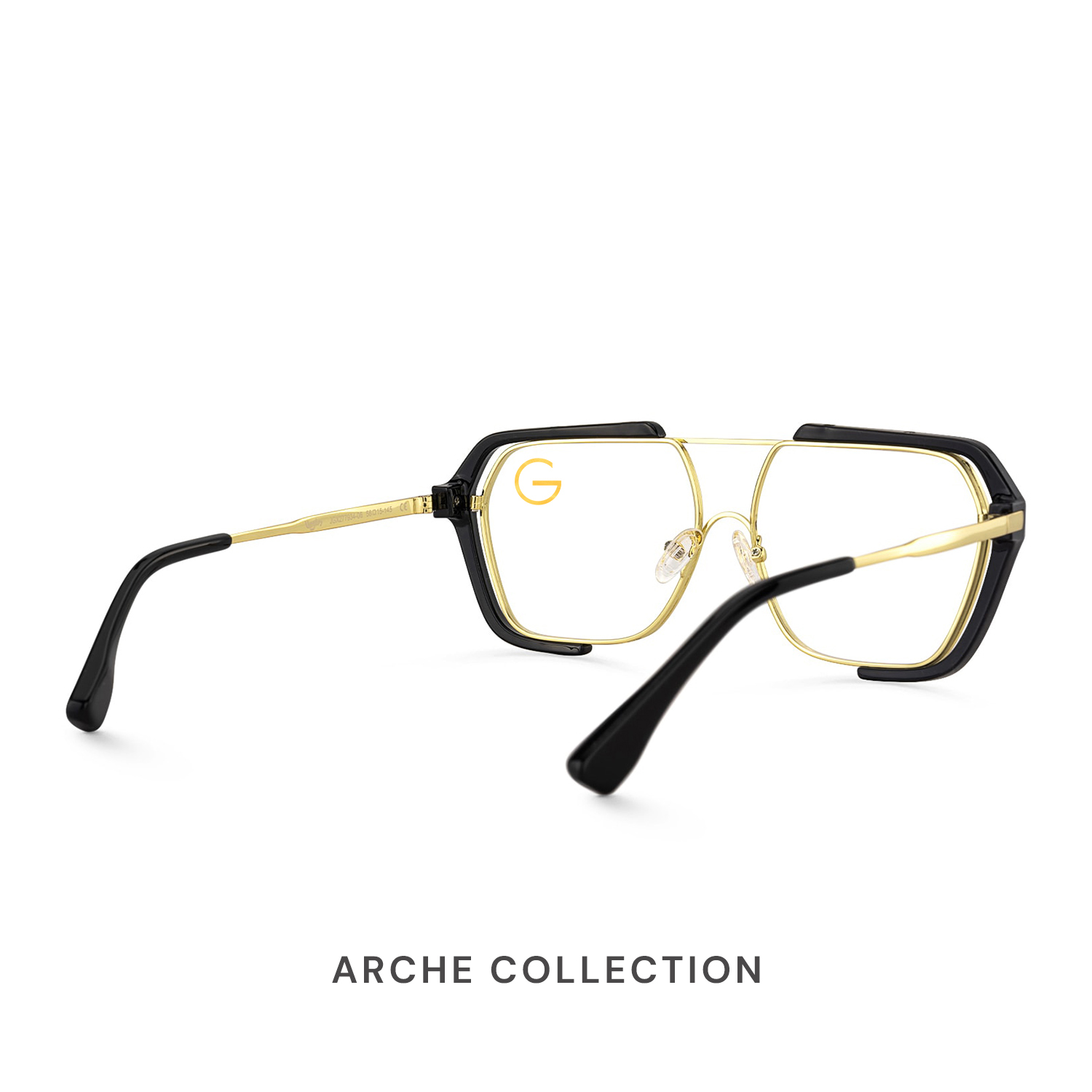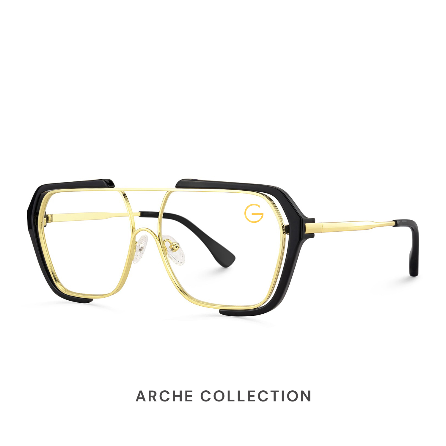 Each frame in the Arche Collection features a bold aviator-inspired silhouette crafted from a refined blend of metal and TR material in a gold and transparent finish. Aerospace-inspired detailing and geometric temple construction create a sense of strength, precision, and modern artistry. Designed for visionaries and style pioneers, the Arche Collection balances distinctive character with structural harmony—ideal for medium to wide face shapes.