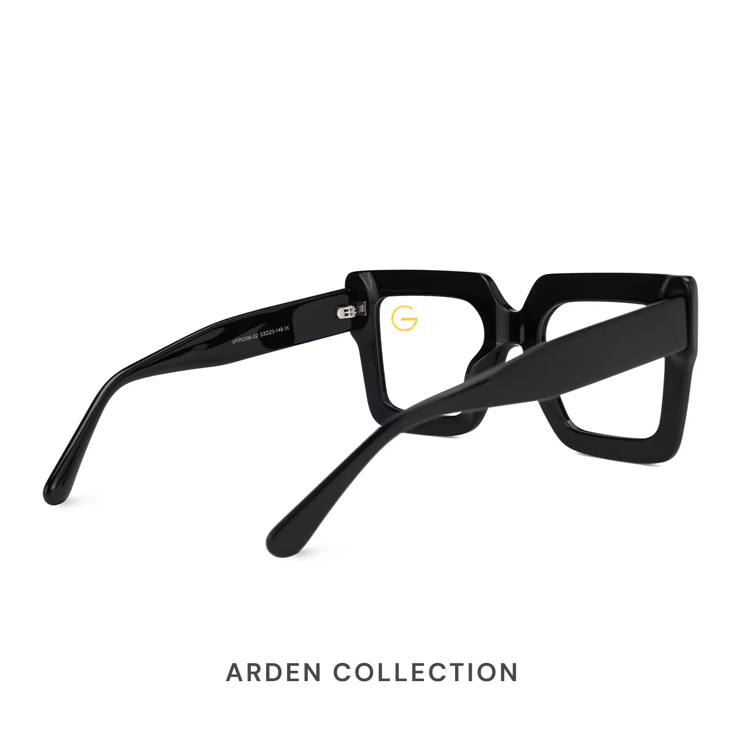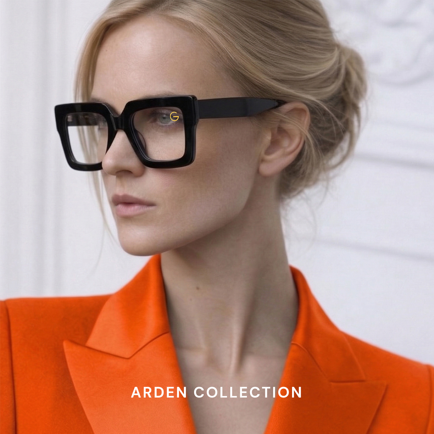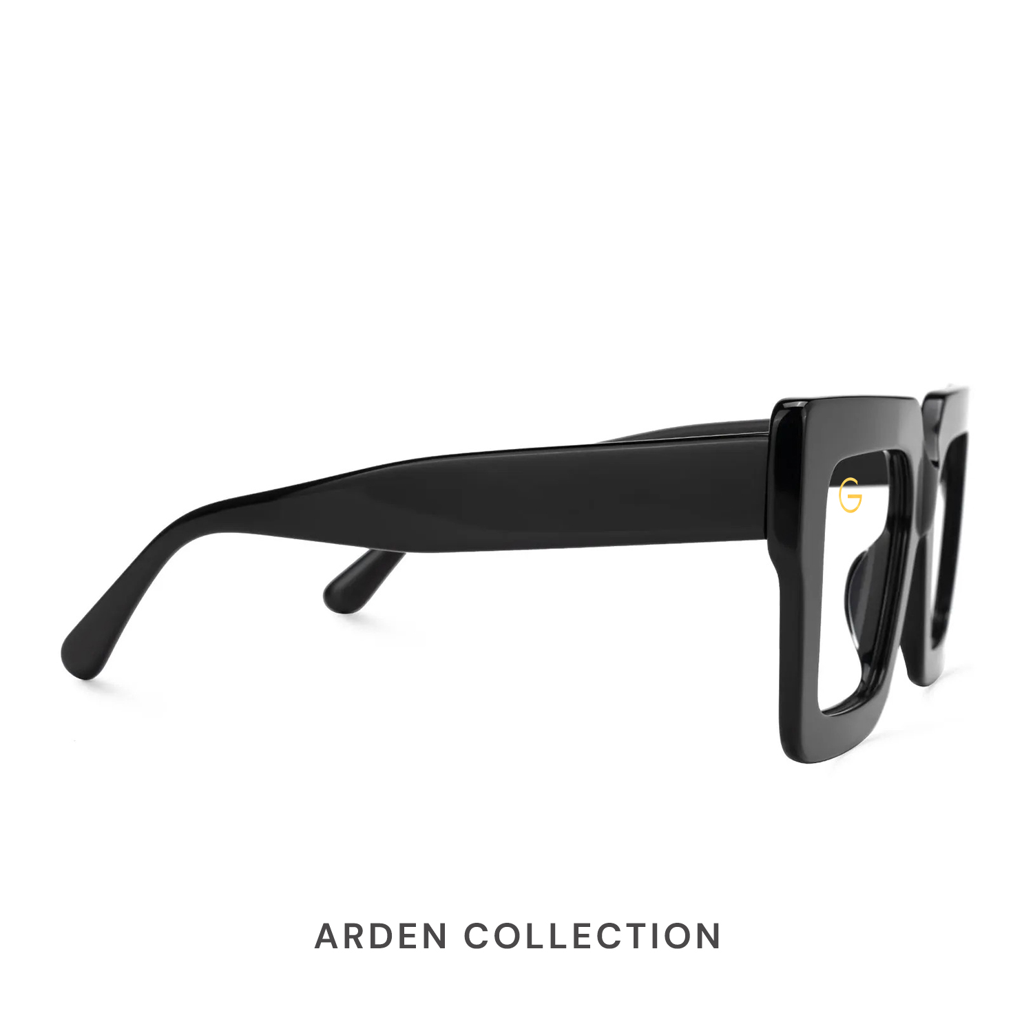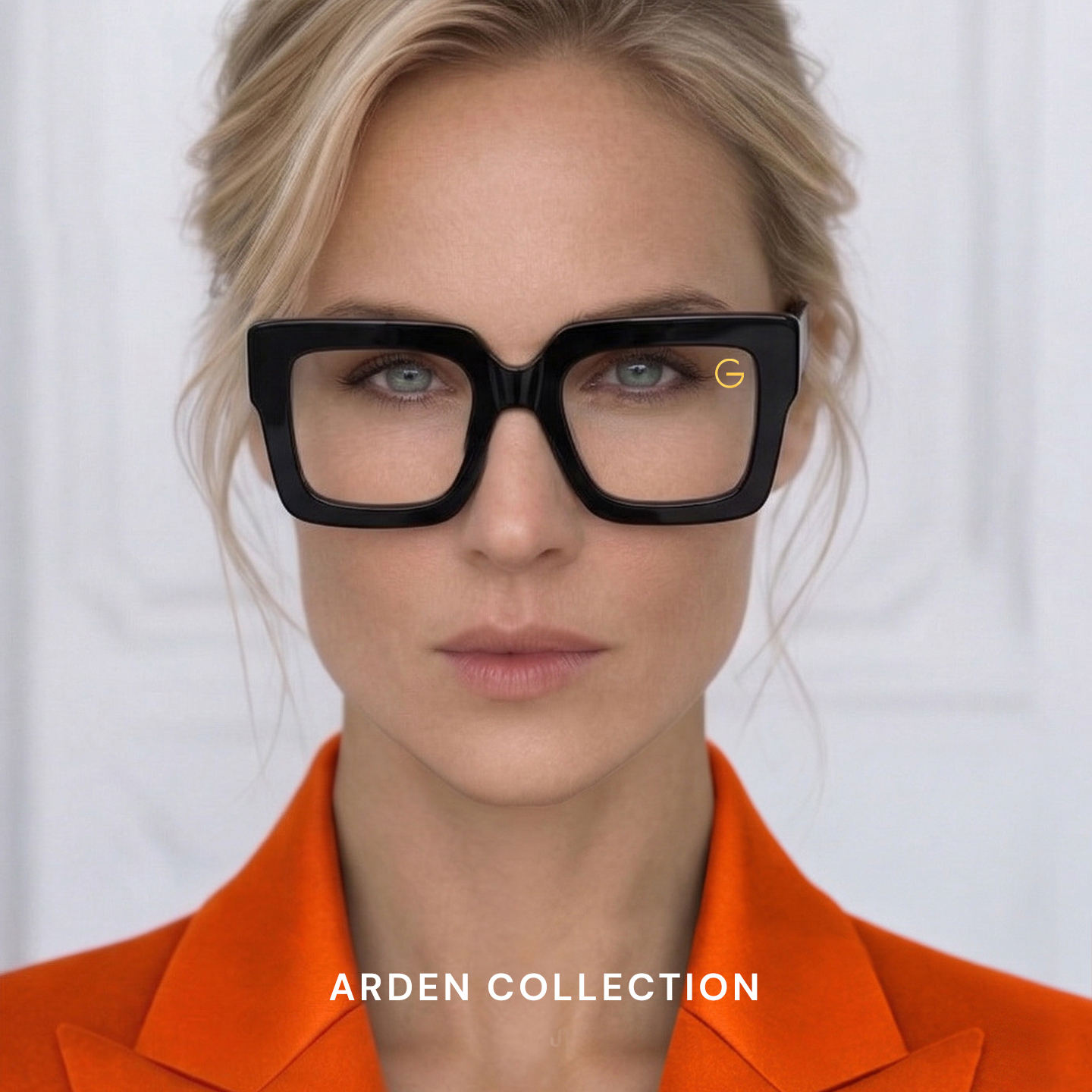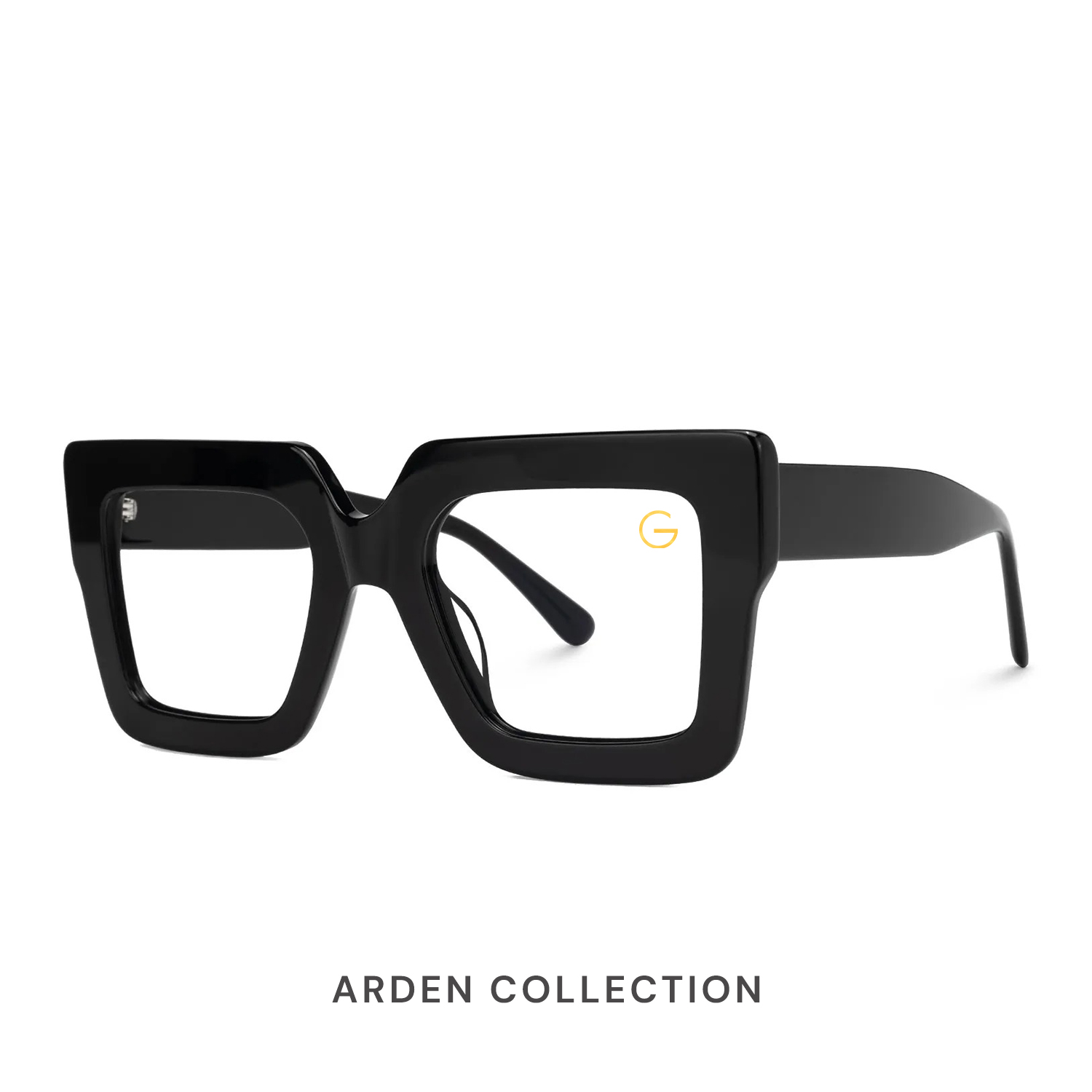 The Arden Collection by G-Eyewear features a gently angled wide square frame designed for a comfortable, roomy fit. Crafted from premium acetate, these glasses are durable and wear-resistant for everyday use. The classic oversized black frame offers a simple yet timeless style that suits all face shapes, with multiple color options to match your personal look.