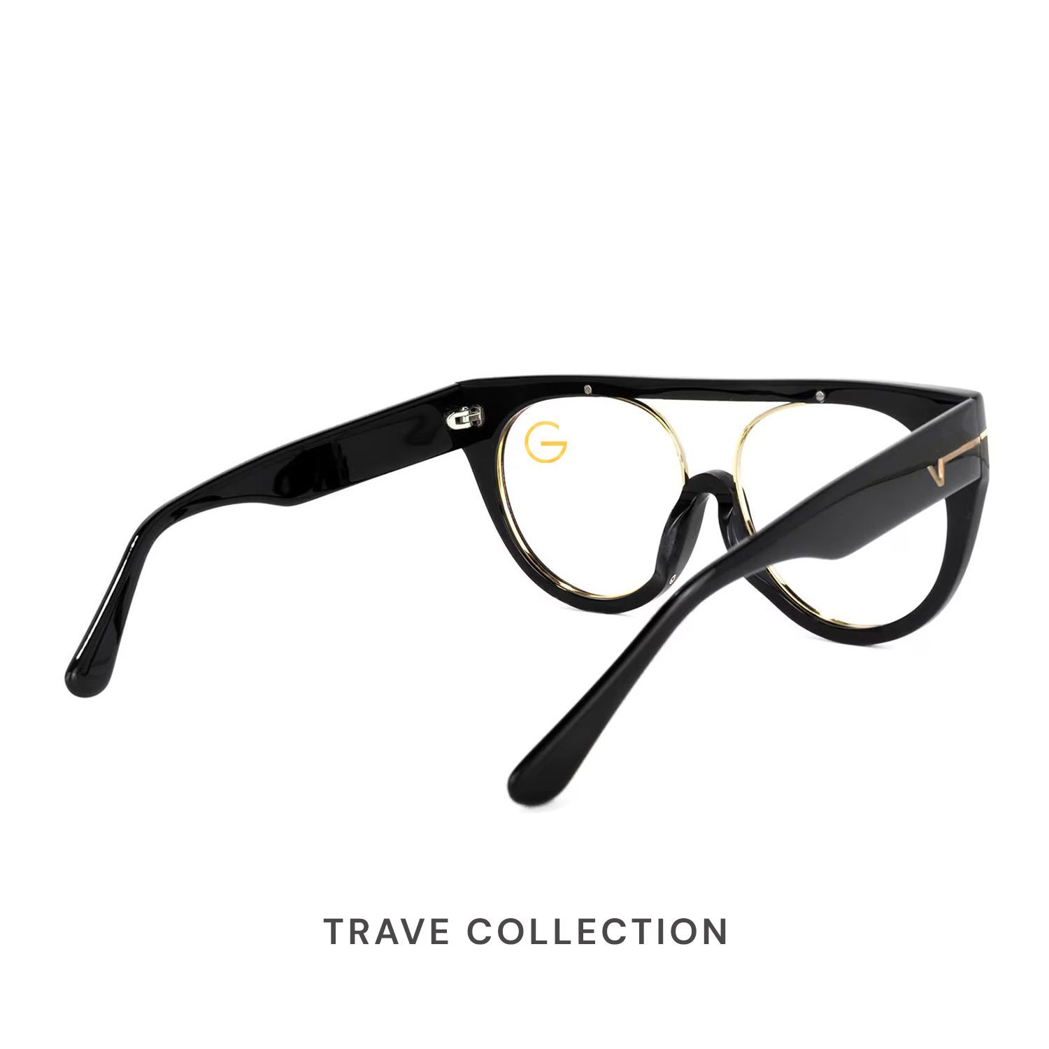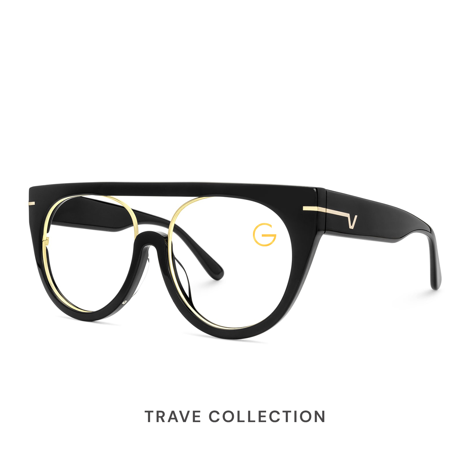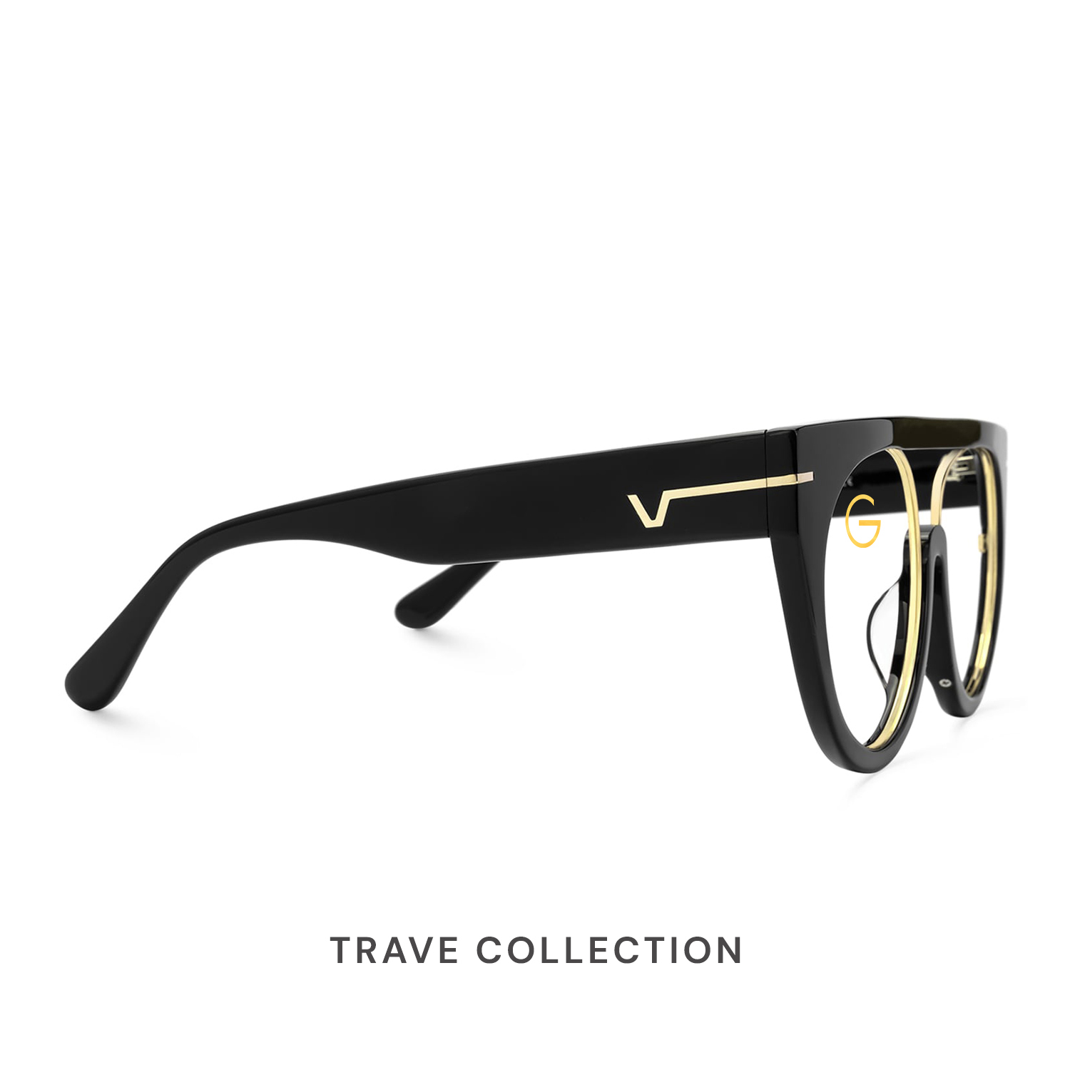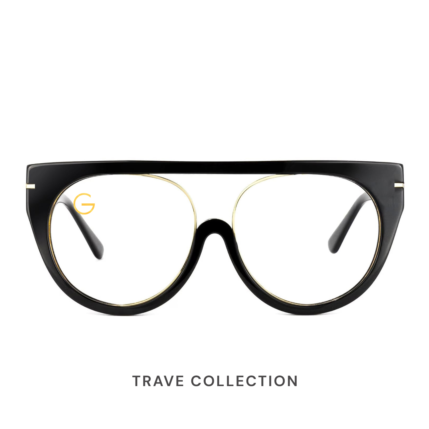 Crafted from premium acetate, the Trave frame features a full‑rim aviator silhouette in a sleek black finish, accented by subtle gold embellishments at the temples for a touch of discreet luxury. Its commanding shape and impeccable construction deliver both confidence and comfort—perfect for those who lead with style and substance.