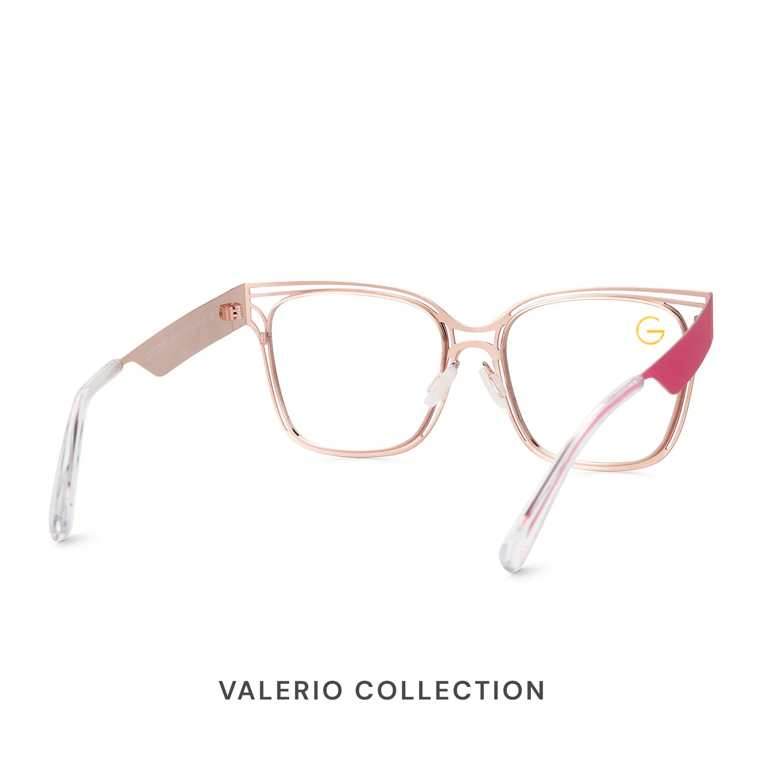Discover everyday style with the Valerio Collection by G-Eyewear. Crafted from premium materials, these dual-level metal frames offer durability with a sleek, modern look. Designed to create a trendy casual impression, they feature refined metal hinges for added strength. Stylish, versatile, and comfortable, this chic pair is perfect for elevating your daily eyewear.